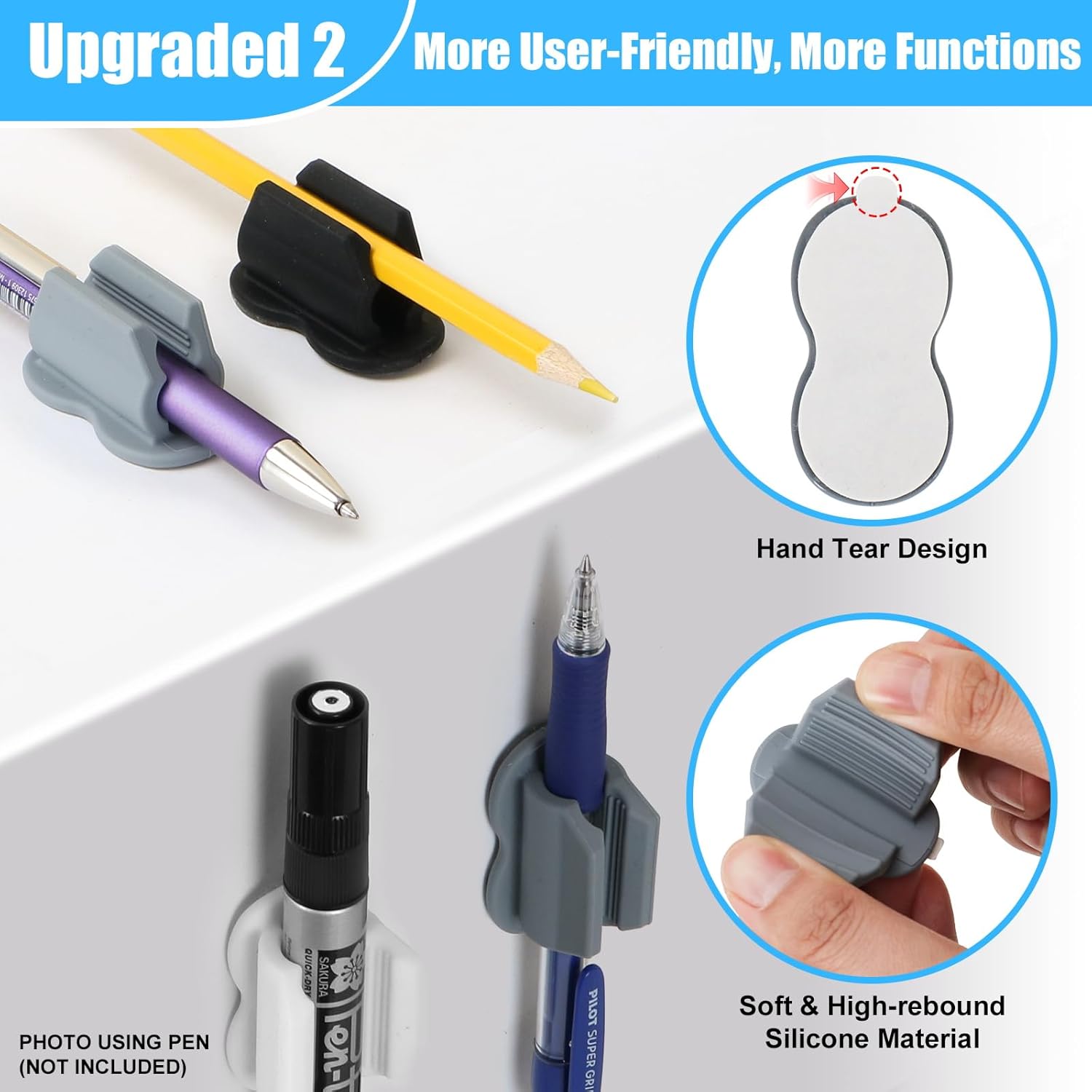 6 Pack Upgraded Pen Holder, Adhesive Pencil Pen Holder for Desk & Wall, Marker Holder, Pen Holder for Clipboard, Teacher Supplies for Classroom kids Desk Cord Organizer Accessories Cable Clips Holder