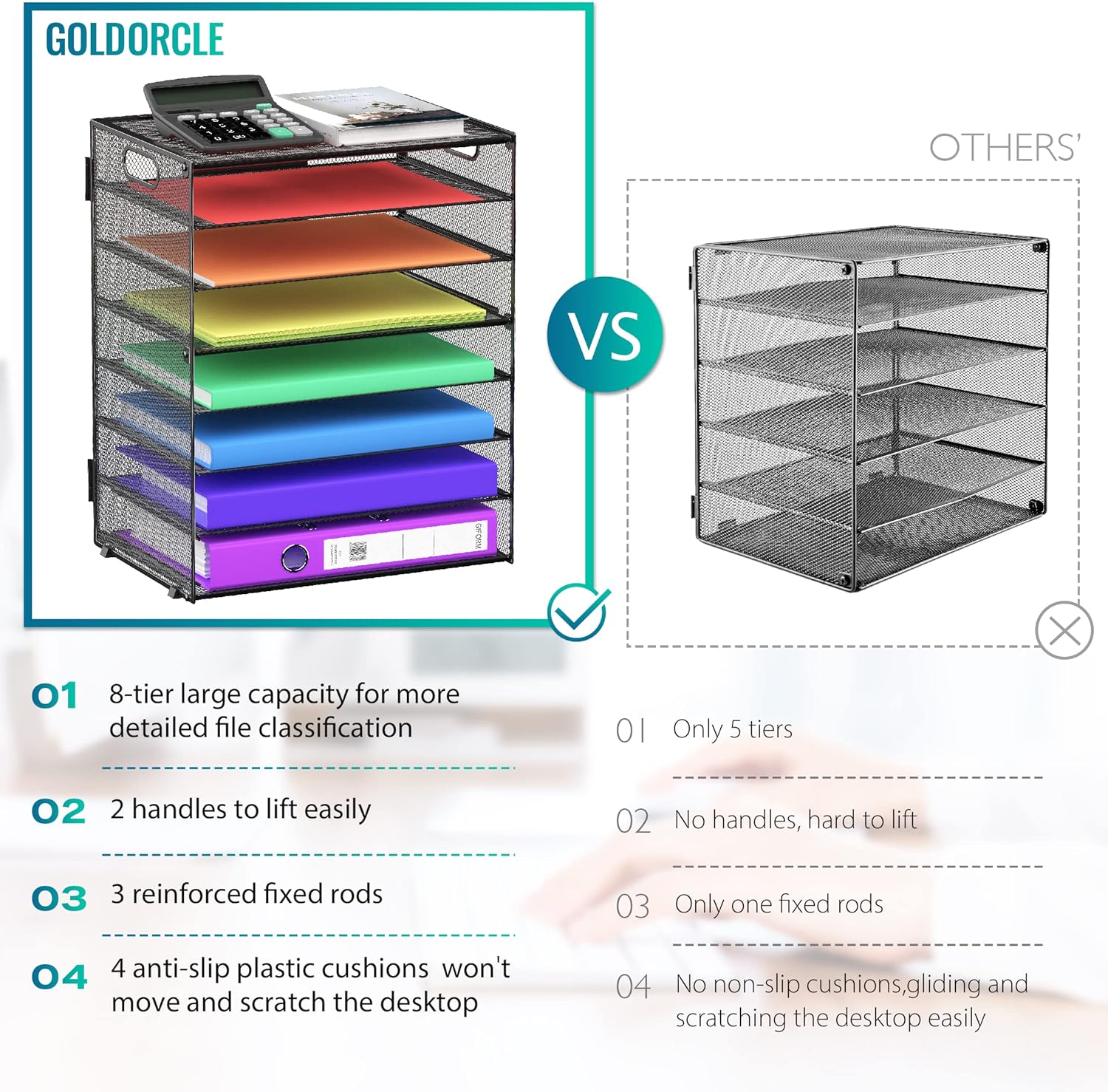 Keep your workspace organized and clutter-free with the 8 Tier Paper Letter Tray Organizer. This sleek and stylish mesh desk file holder is the perfect solution for storing papers, folders, and other office supplies in one convenient location. The 8 tier design allows for easy access to all of your important documents, while the sturdy handles make it easy to transport from one location to another. Perfect for the office, school, or home desktop, this storage organizer is a must-have for anyone looking to streamline their workspace. Stay on top of your tasks and stay organized with the 8 Tier Paper Letter Tray Organizer.