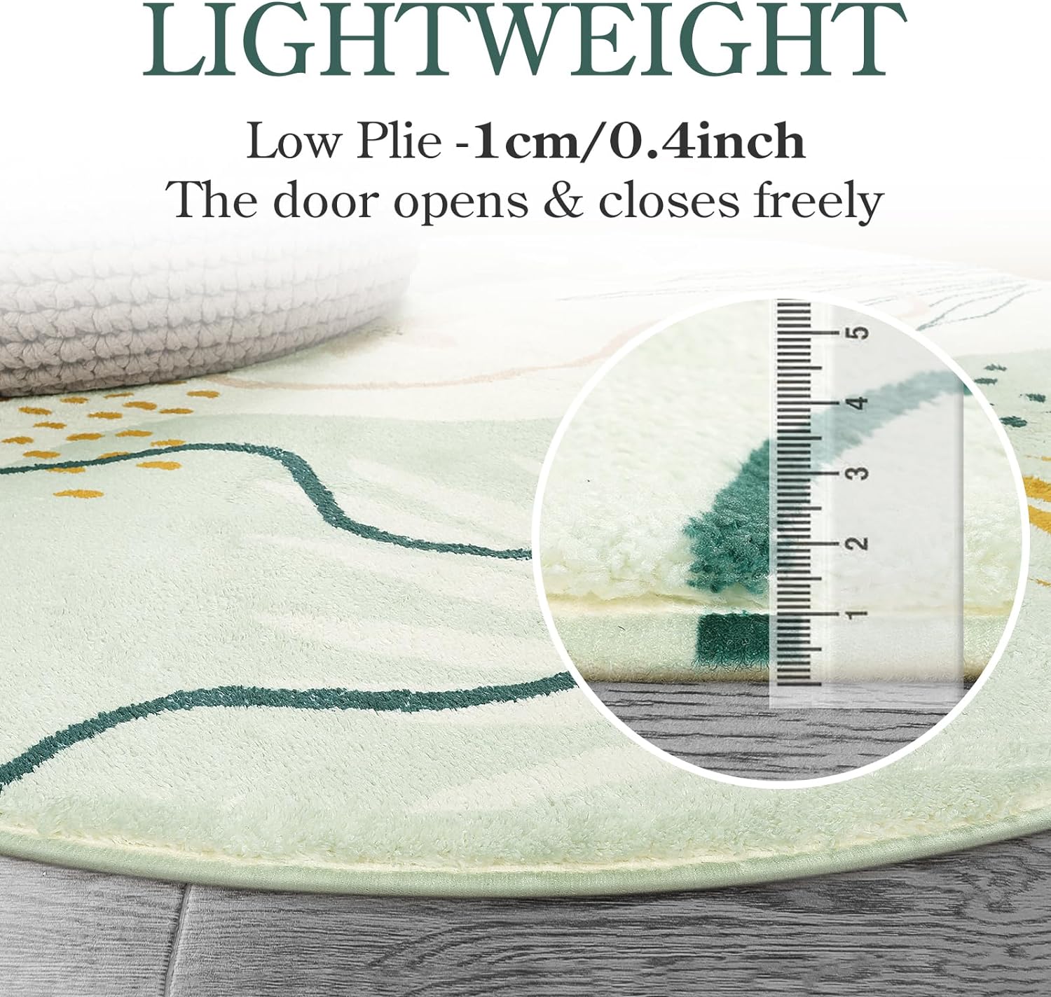 Lahome Green Botanical Print Small Throw Rugs Modern Abstract Non-Slip 3×5 Minimalist Art Area Rug Accent Distressed WashableFloor Carpet for Living Room Bedroom Entryway